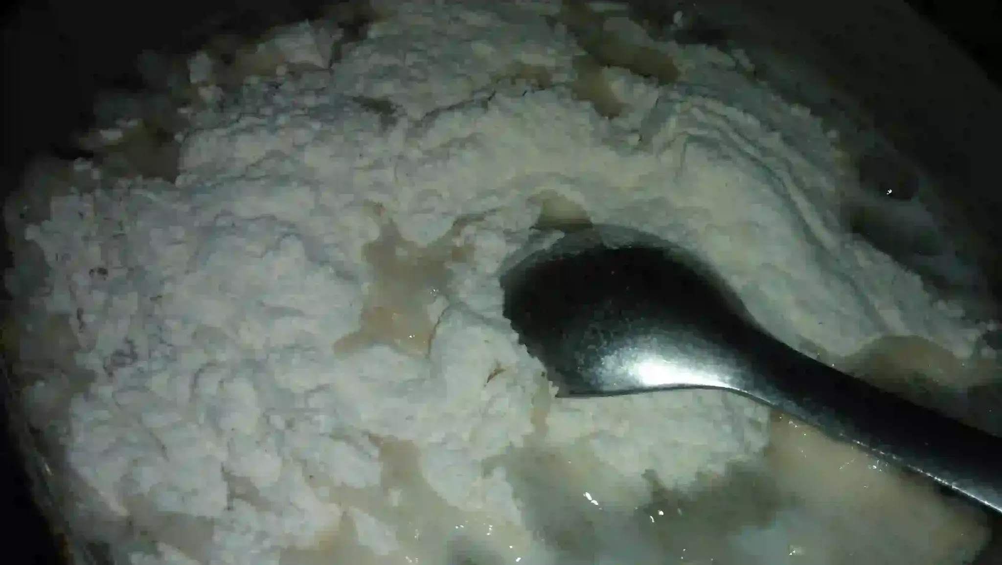 - After five minutes turn off the stove and remove the cooked rice flour in a kneading plate.