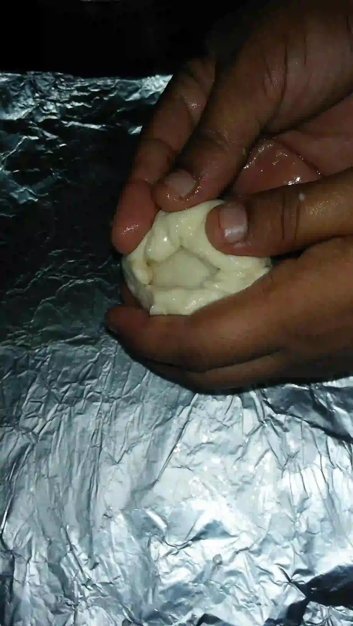 - Apply oil or water to your hands and knead the stuffing still it is warm.