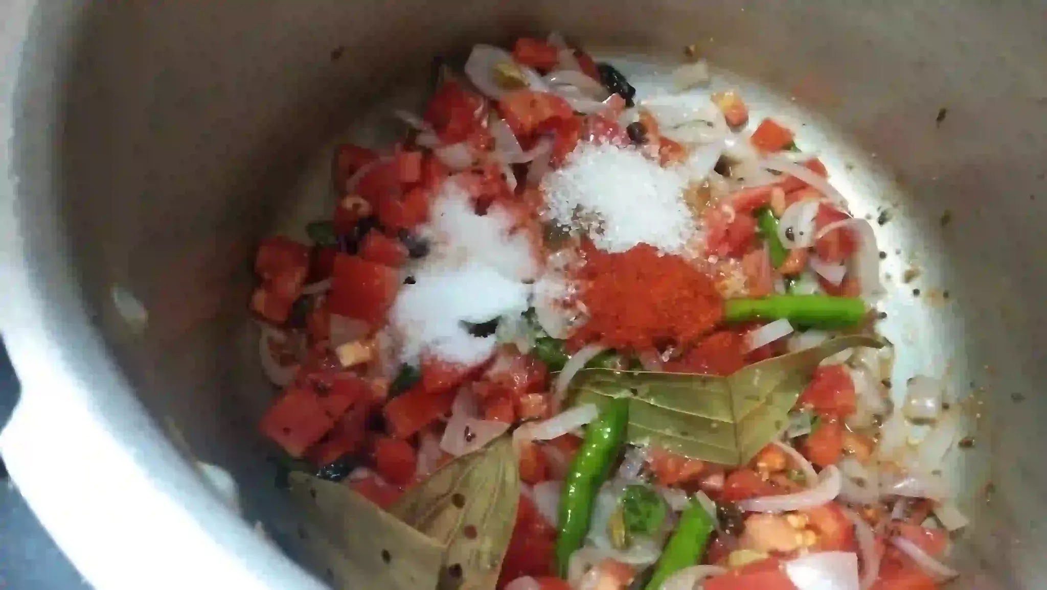 Add chili powder, sugar and salt and sauté for 1 minute.